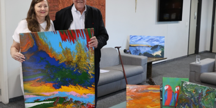 Recebendo servidora municipal que terá pinturas expostas no Carrousel du Louvre