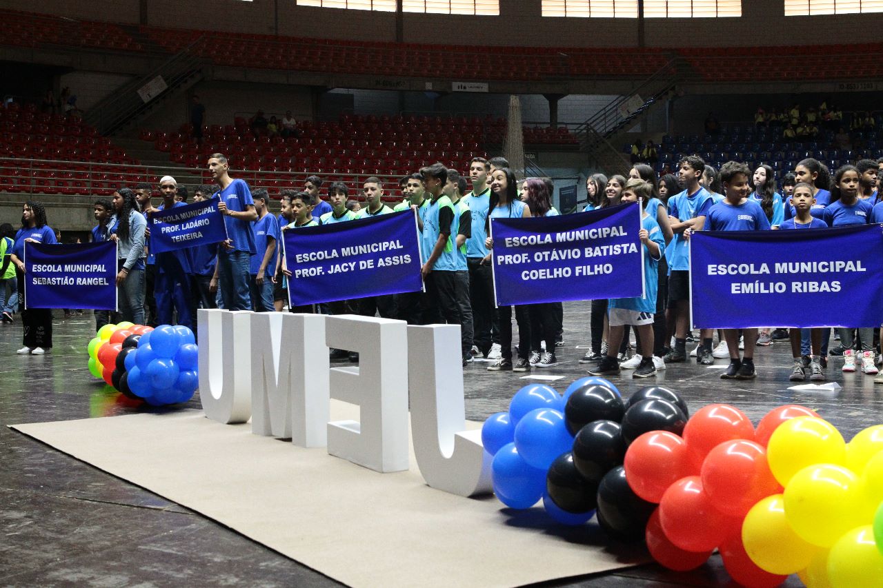 A Arena Sabiazinho recebeu, na manhã deste sábado (5), a abertura da edição 2023 dos Jogos das Escolas Municipais de Uberlândia (Jemu). Aproximadamente 800 alunos da Rede Municipal de Ensino participaram da cerimônia, representando 30 escolas. Ao todo, 2,8 mil alunos estarão envolvidos, durante os próximos meses, na competição organizada pela Secretaria Municipal de Educação com apoio da Fundação Uberlandense do Turismo, Esporte e Lazer (Futel).