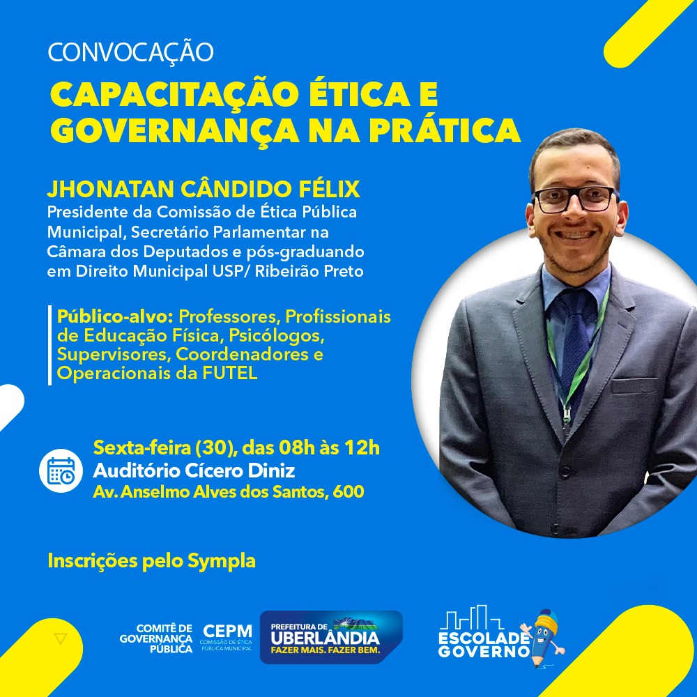 O conteúdo será ministrado pelo presidente da comissão Jhonatan Cândido Félix. O evento também tem apoio da Escola de Governo da Prefeitura.