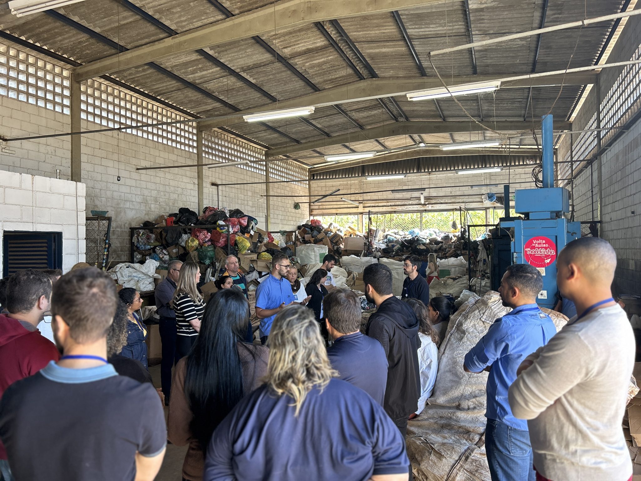 Nesta quarta-feira (17), em comemoração ao Dia Mundial da Reciclagem, o Departamento Municipal de Água e Esgoto (Dmae) levou a comunidade e servidores da autarquia para conhecer a Associação de Recicladores e Catadores Autônomos (Arca), localizada no bairro Santa Luzia. No espaço, é realizada a triagem do material recolhido na cidade pelo ecocaminhão da Coleta Seletiva.