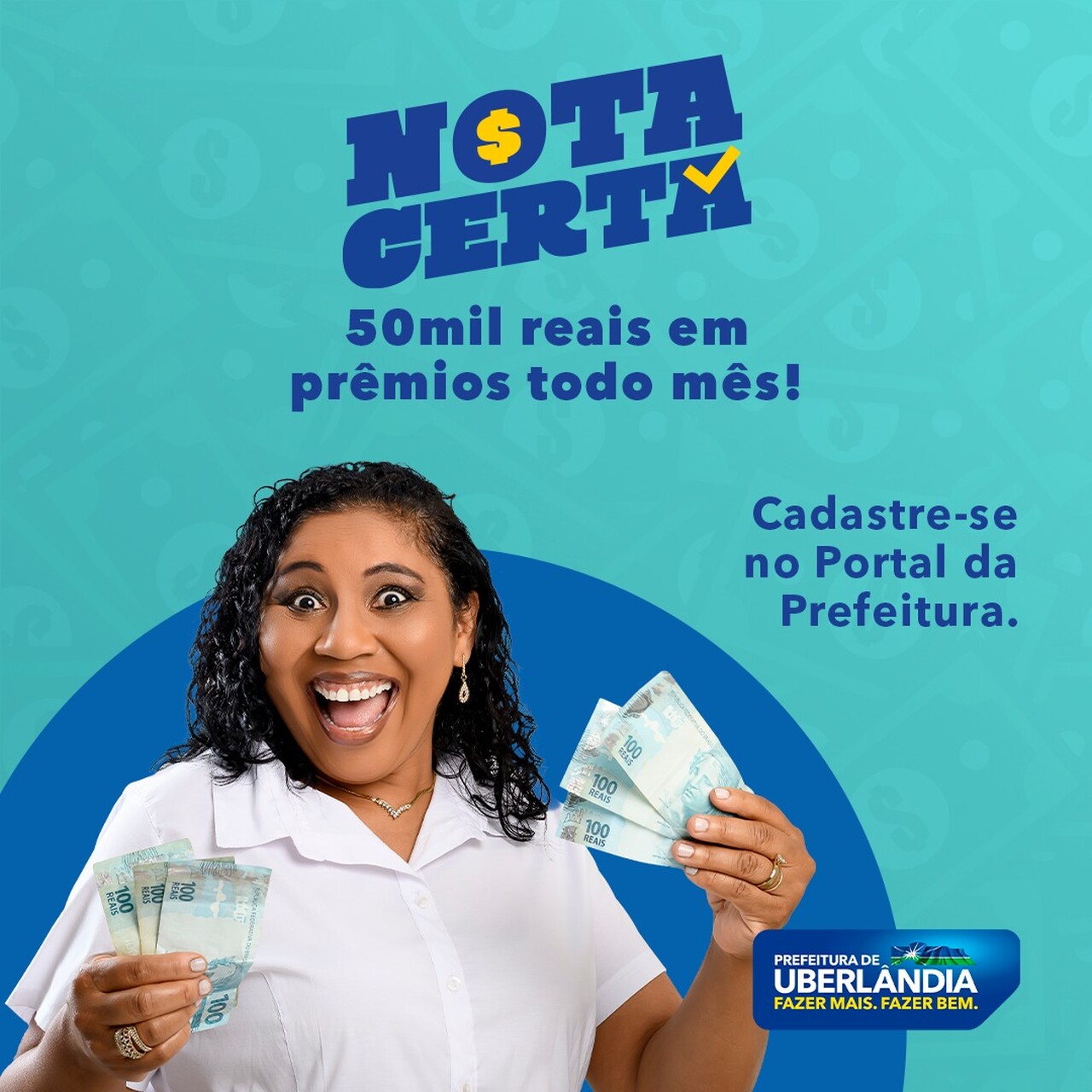 O programa “Nota Certa” segue com o cronograma mensal de sorteios. Lançada em outubro de 2019, a ação é desenvolvida pela Prefeitura de Uberlândia, por meio da Secretaria Municipal de Finanças, para estimular a cidadania fiscal. Quem tomar notas fiscais de serviços eletrônicas (NFS-e) emitidas por prestadores de serviço da cidade entre os dias 1º e 31 de agosto concorre ao 9º sorteio do ano, que será realizado em setembro.