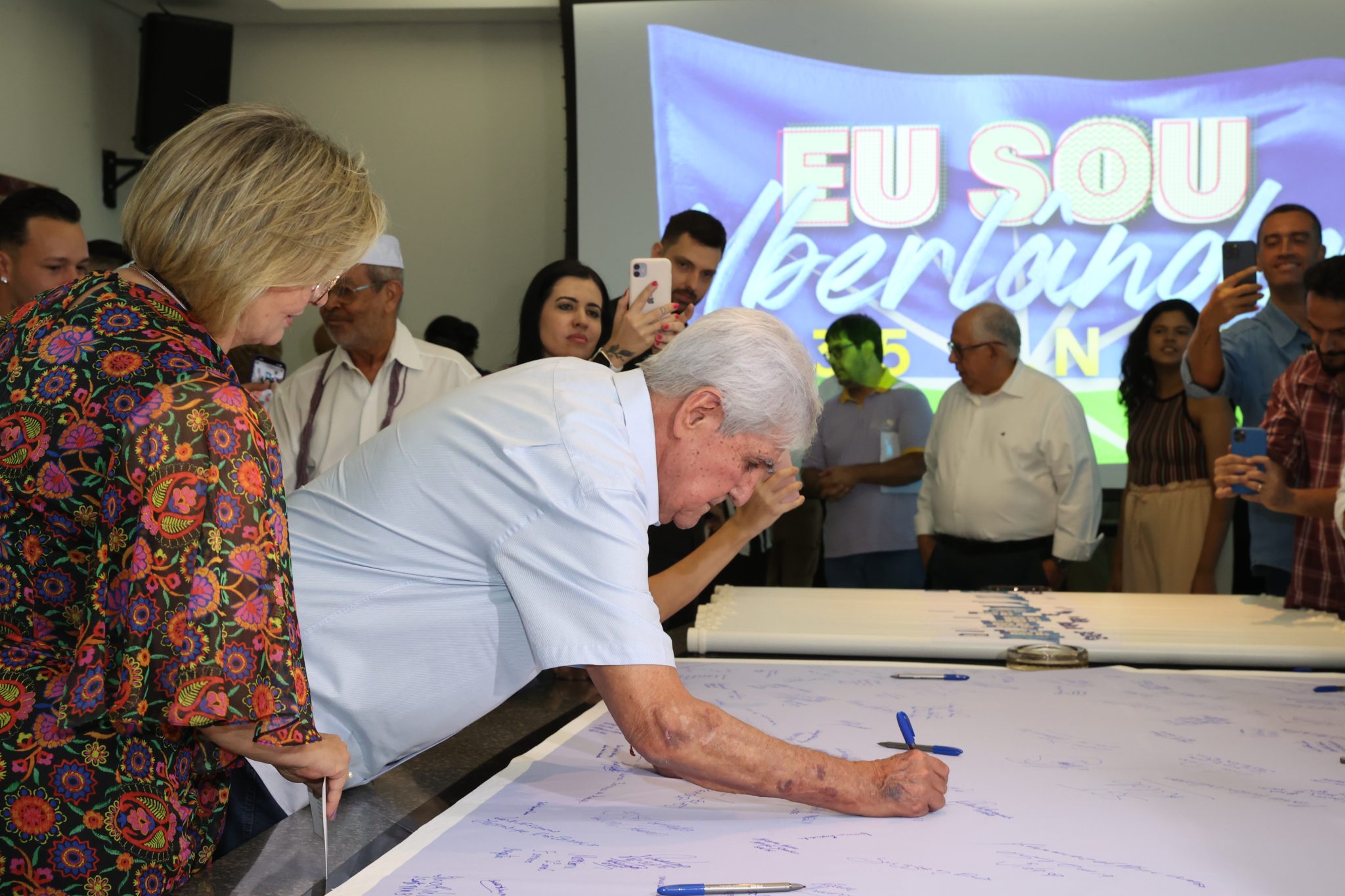 Dividida em 48 partes, ela será levada a diversos espaços públicos de Uberlândia, como praças, parques, escolas e comércios para que as pessoas possam deixar a sua assinatura gravada. “O grande significado desta bandeira é a comemoração do nosso aniversário. Com esse ato, queremos demonstrar que quem faz Uberlândia é o povo de Uberlândia. Daqui 50 anos não estarei mais aqui, mas aqueles que estiverem poderão lembrar deste momento. De antemão, desejo os parabéns ao nosso povo e a Uberlândia”, disse o prefeito.