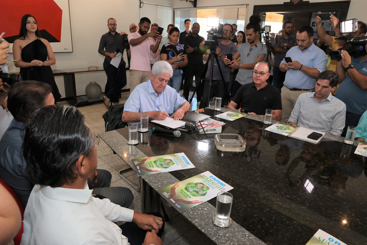 Uberlândia inova mais uma vez em ações pioneiras que estimulam a economia, reduzem gasto público e promovem a sustentabilidade e a responsabilidade ambiental. Por meio do Departamento Municipal de Água e Esgoto (Dmae), a Prefeitura dará início ao projeto para implementar a 1ª planta industrial do Brasil para produção em larga escala de energia e fertilizante a partir do lodo resultante do tratamento de todo o esgoto gerado pela cidade.  A primeira etapa consiste na contratação de um estudo técnico, cuja ordem de serviço foi assinada na tarde desta terça-feira (11) pelo prefeito Odelmo Leão junto à empresa Companhia de Promoção Agrícola (Campo).