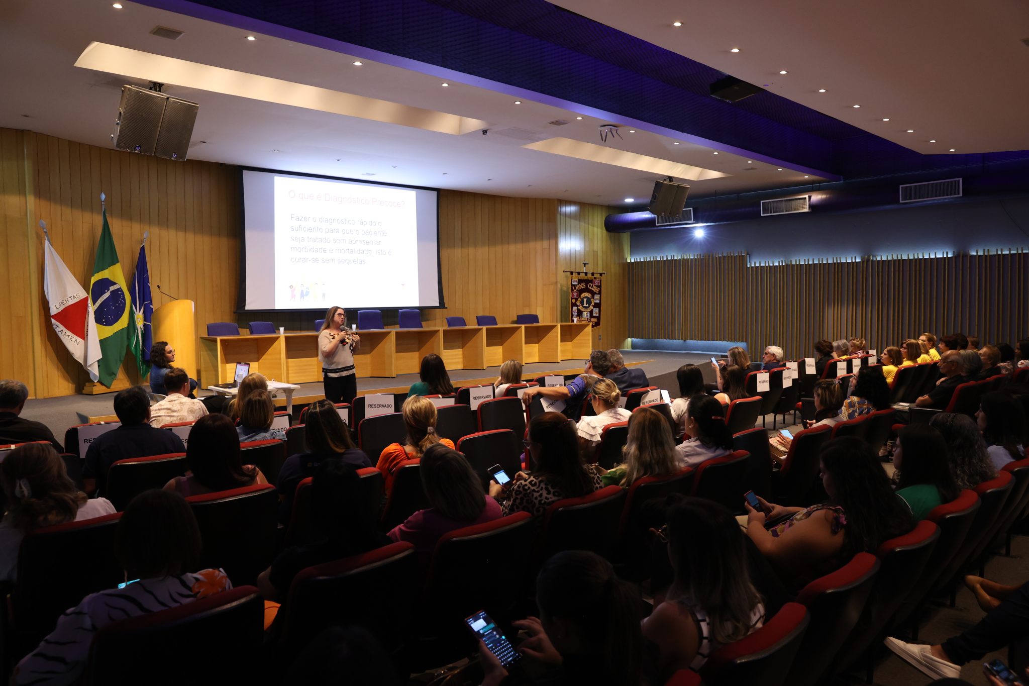 Reforçando a importância do diagnóstico precoce para o tratamento imediato do câncer infantojuvenil, a Prefeitura de Uberlândia apoiou e realizou nesta quinta-feira (3), no auditório Cícero Diniz, no Centro administrativo, a ação “Sensibilização para o Câncer Infantojuvenil”. O encontro é uma iniciativa do Lions Clube 21 de abril, com apoio das secretarias de Educação e Saúde, do Grupo Luta pela Vida, Hospital do Câncer do município e do setor de Oncologia do Hospital de Clínicas da Universidade Federal de Uberlândia (HC-UFU).
