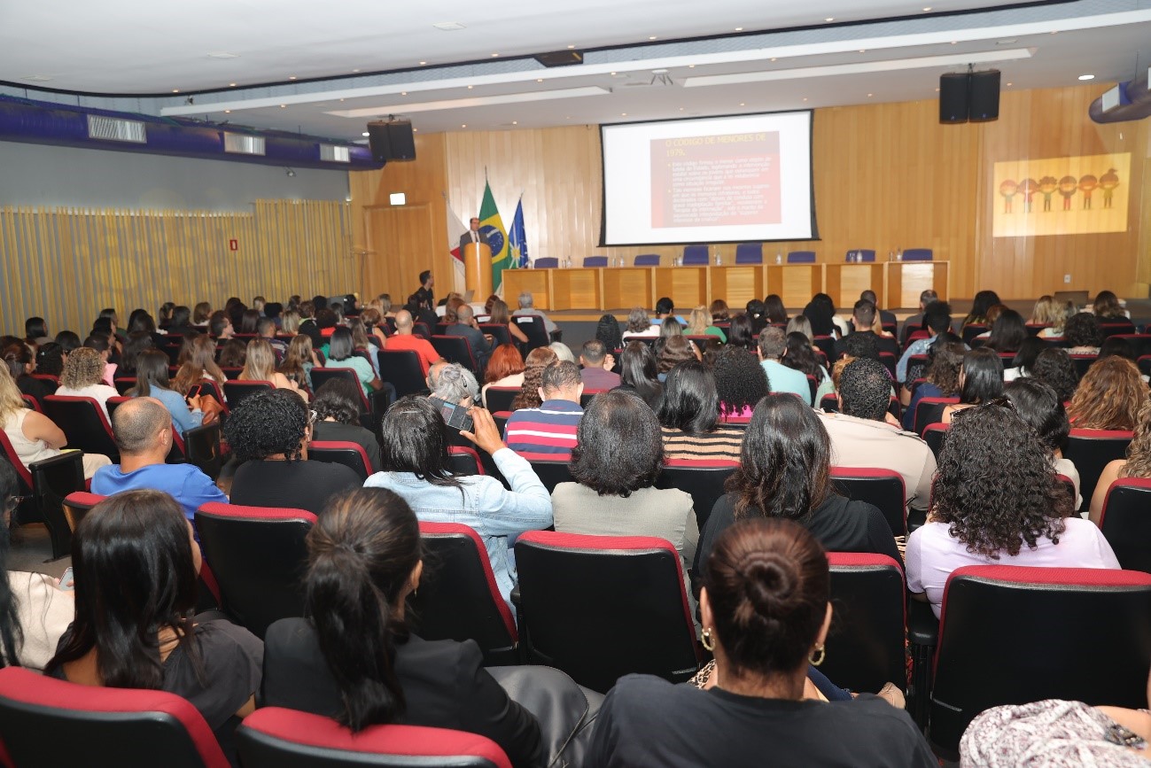 A Secretaria Municipal de Desenvolvimento Social realizou, na manhã desta segunda-feira (31), o evento de celebração pelos 33 anos do Estatuto da Criança e do Adolescente (ECA). Marcado por palestras do juiz da Vara da Infância e Juventude de Uberlândia, José Roberto Poiani, do promotor de Justiça da Infância e da Juventude, Epaminondas da Costa, e da mestre em psicologia social e pós-graduada em antropologia da infância, Dayse César Franco Bernardi, o encontro reuniu cerca de 200 pessoas no auditório Cícero Diniz, no Centro Administrativo Municipal.
