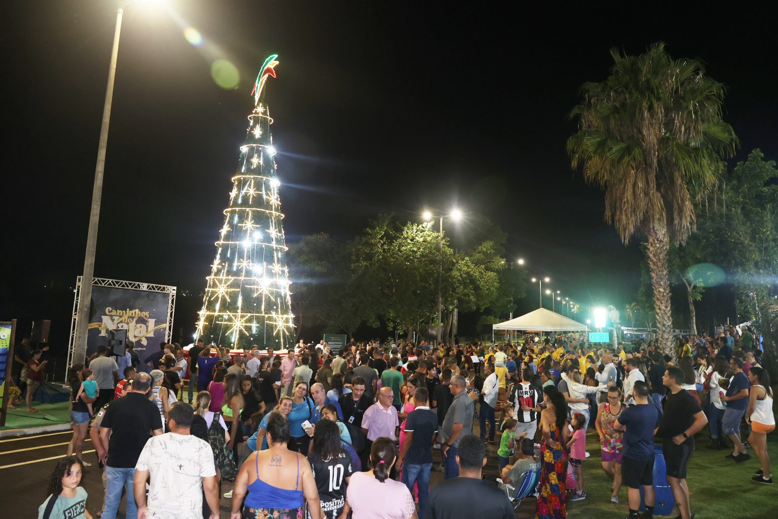 Foi inaugurada, na noite desta quinta-feira (30), a primeira etapa da decoração natalina no Parque do Sabiá. Durante a cerimônia, foi acesa a árvore de Natal, resultado de uma parceria entre Prefeitura, por meio da Fundação Uberlandense do Turismo, Esporte e Lazer (Futel), e o Center Shopping. Localizada às margens da represa, próximo à portaria do bairro Santa Mônica, a estrutura tem 14 metros de altura e é toda de microled. Além disso, as portarias do Mundo da Criança e do Santa Mônica receberam iluminação especial e guirlandas.