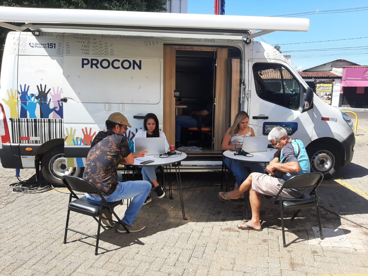 O Procon Móvel segue, a partir desta quarta-feira (24), para o bairro Pacaembu, região norte de Uberlândia. Para garantir comodidade no atendimento, o serviço estará disponível, até sexta-feira (26), na rua 7 de Setembro, 871, no estacionamento do Centro de Internação Pediátrico, das 12h às 17h. Na próxima semana, a van atende no Centro e no Laranjeiras.